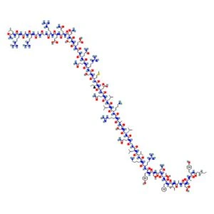 Tesamorelin is a synthetic peptide designed to mimic growth hormone-releasing hormone (GHRH). Consisting of 44 amino acids, it works by stimulating the GHRH receptors at the base of the pituitary gland to produce and release growth hormone (hGH). This increase in growth hormone helps break down visceral fat, making it an important treatment for managing abnormal fat distribution.